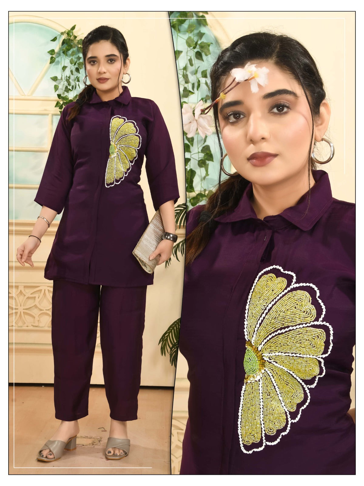 MAL CHANDERI SILK HAND WORK CO-ORD SET