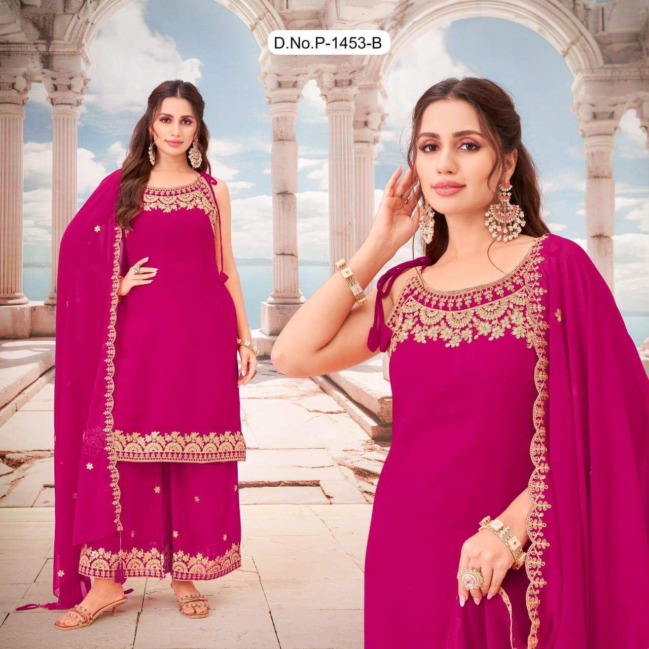 Georgette Sharara Set with Embroidered Kurti & Dupatta for Women Ethnic Fashion