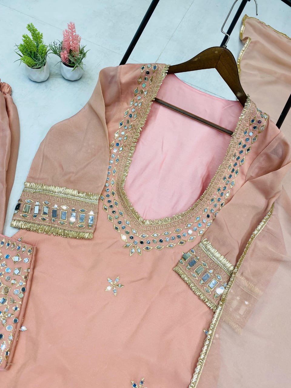 __EXCLUSIVE 4 PIECE PLAZZO PAIR WITH REAL MIRROR AND EMBROIDERY WORK✨__