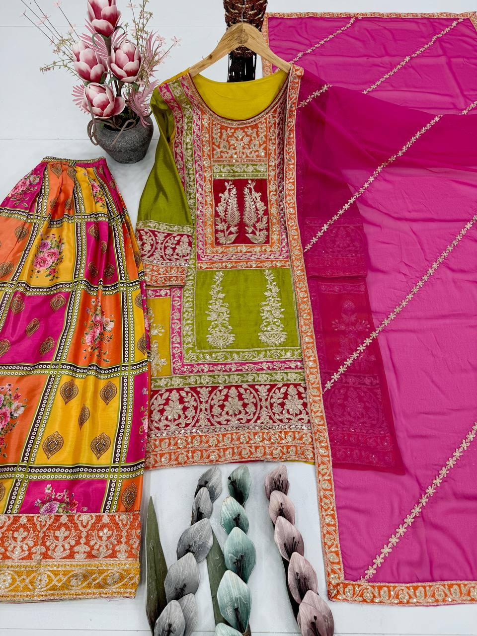 #PLAZZO WORK : FANCY DIGITAL PRINT WITH CHINE SEQUINS WORK